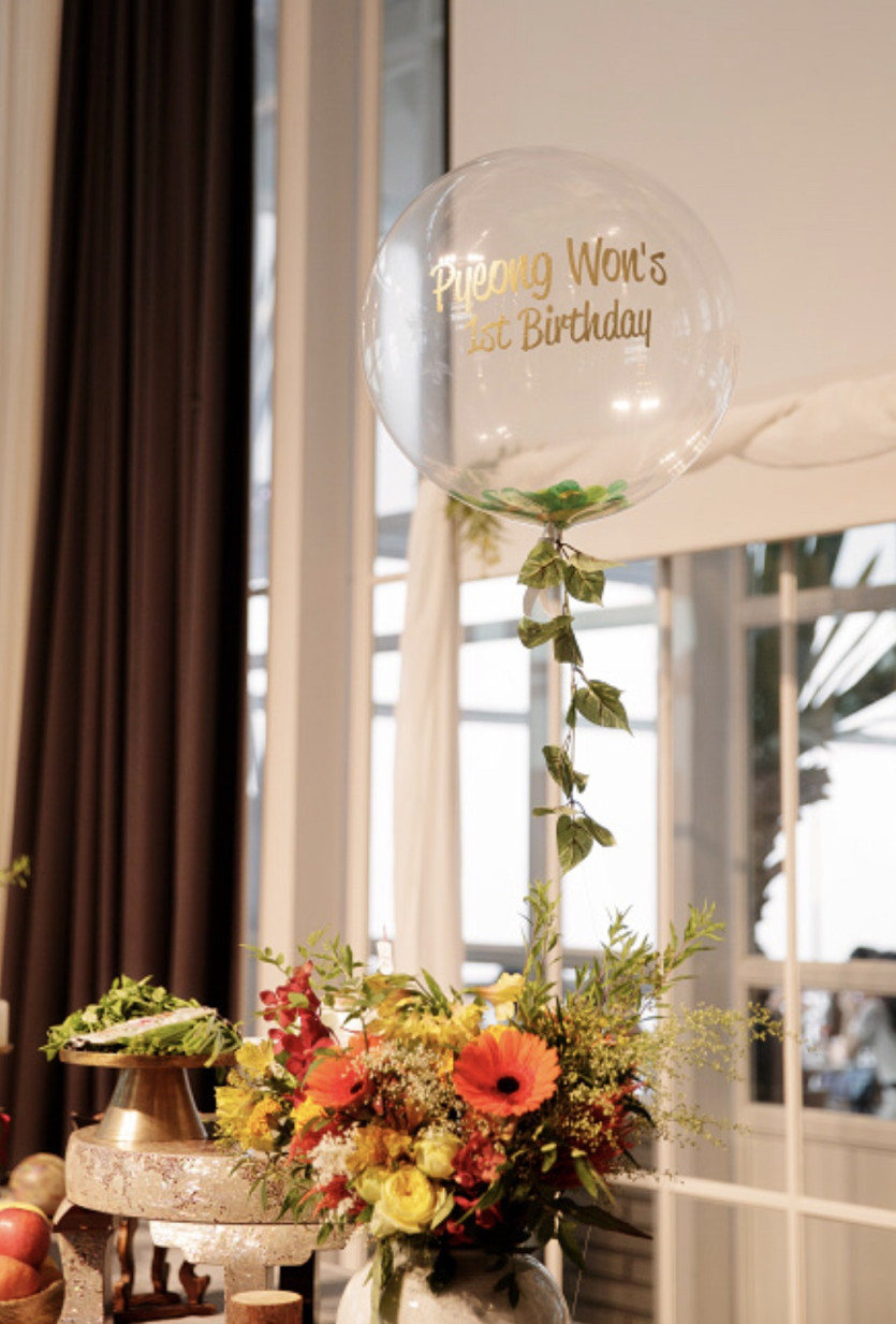아이 돌잔치라 인별그램에서 서치하여 맞춤 제작할 수 있는 풍선 발견! 데코와 메시지 폰트까지 고를 수 있어서 좋았는데 지인들이 가격듣고 다들 허거거해서 넘비싼가 뒤늦게 현타옴
