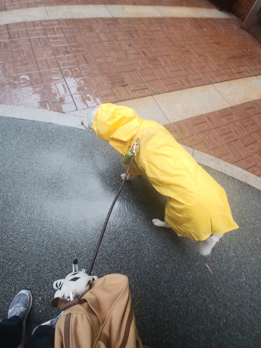 장마철을 맞아 급하게 쿠팡에서 18천원 주고 샀어요. 소재가 얇고 가벼워서 크게 불편해하지 않는거 같더라고요. 물론 좀 덥기야 하겠지만, 실외 배변하는 개들한테 장마철 필수템인듯~