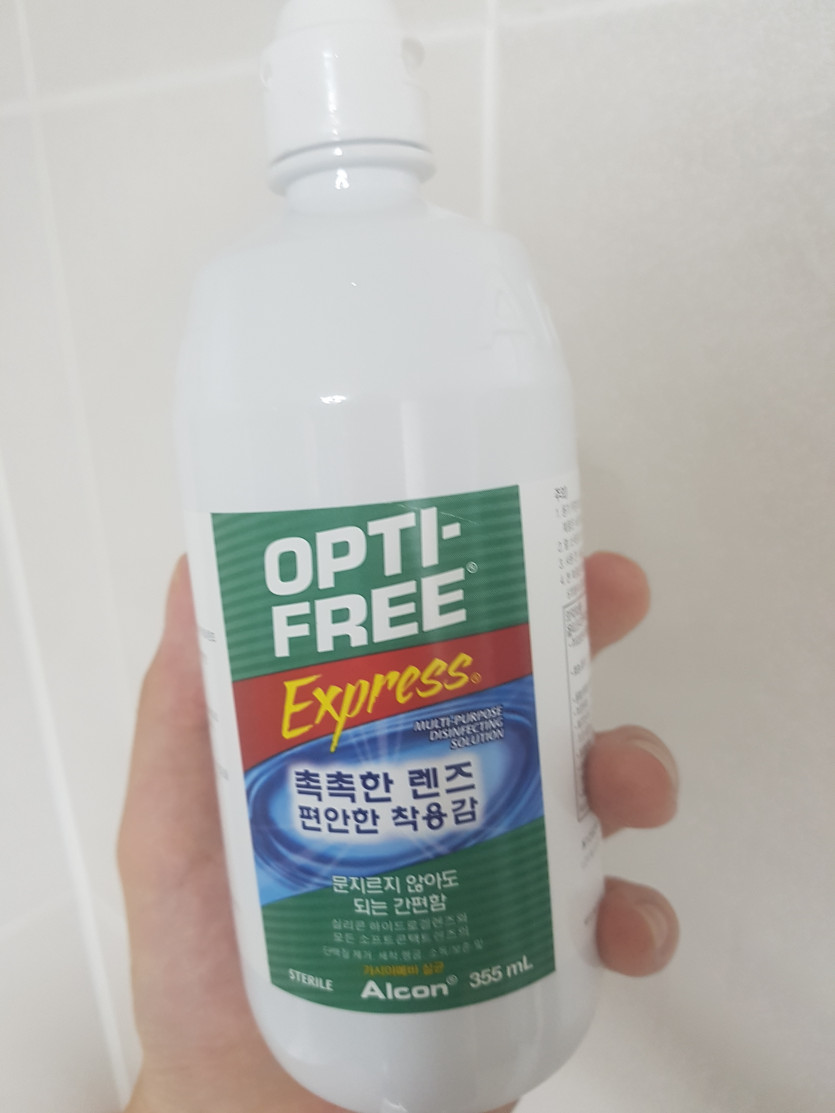렌즈 7년차의 필수템! 바슈롬 같은 다른 세척액도 써보았지만 역시 옵티프리가 갑. 다른 제품처럼 렌즈를 비빌 필요없이 5초간 행구어 준 후 통에 액과 함께 보관해주면 끝이다 :)